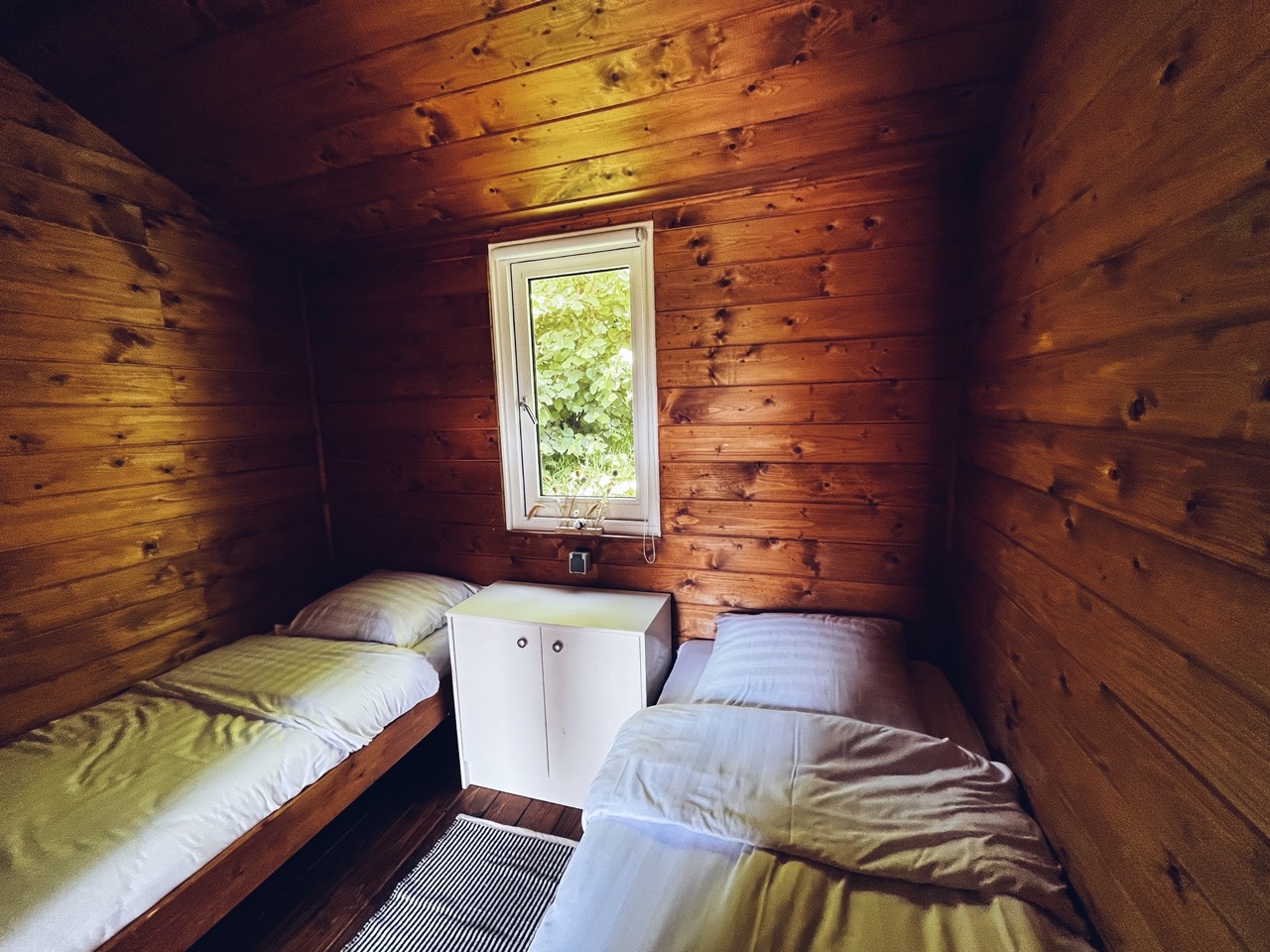Beddengoed is aanwezig in het huisje. Je slaapt op heerlijke elektrisch verwarmde bedden van 80x200cm. Er zijn enkel twee eenpersoonsbedden aanwezig.